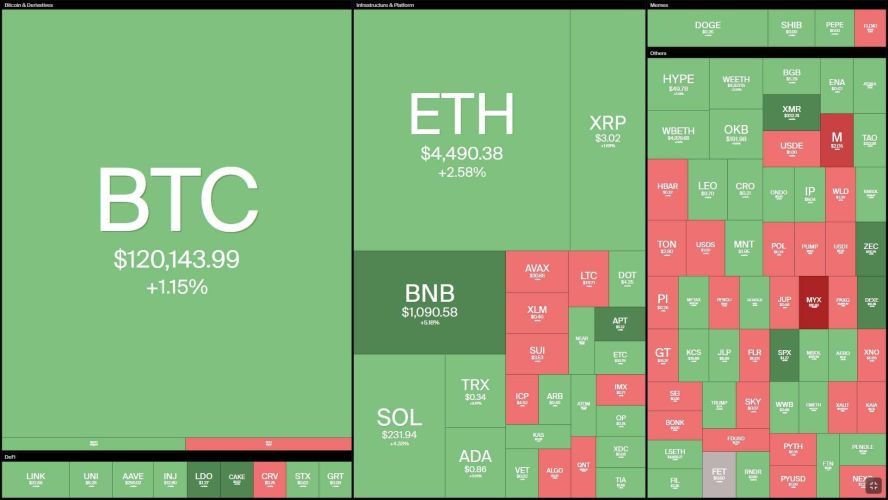 Sự phục hồi mạnh mẽ không chỉ diễn ra ở Bitcoin. Các đồng tiền có vốn hóa lớn khác như Ethereum (ETH), Solana (SOL) và đặc biệt là BNB cũng đồng loạt ghi nhận mức tăng trưởng đáng kể.