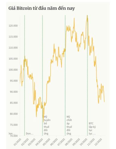 Ghi nhận trong 24 giờ qua, đồng tiền số lớn nhất hành tinh đã giảm khoảng 2,7%, giao dịch quanh ngưỡng 85.700 USD. Cú sụt giảm này không chỉ xóa sạch đà tăng tích lũy được từ đầu tháng mà còn kéo vốn hóa thị trường xuống còn khoảng 1,72 nghìn tỷ USD. Đáng chú ý, khối lượng giao dịch cũng sụt giảm nghiêm trọng hơn 35%, cho thấy dòng tiền đang trở nên thận trọng tột độ.