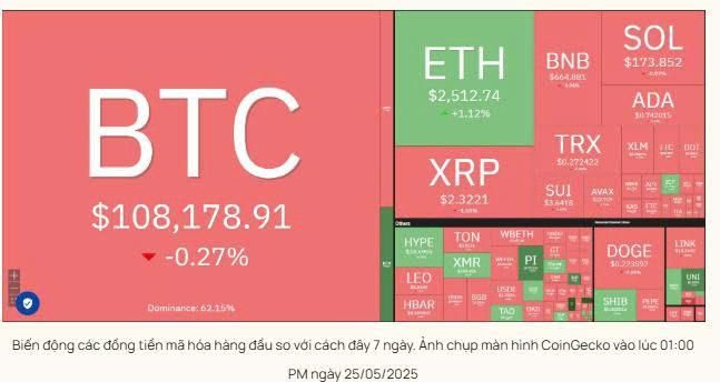 Ngày 25/5/2025 — Sau khi chạm đỉnh lịch sử $109.565 vào giữa tuần, giá Bitcoin (BTC) đã giảm xuống dưới mốc $108.000, hiện giao dịch quanh mức $107.470, giảm 1,2% trong 24 giờ qua. Động thái này diễn ra trong bối cảnh một nhà giao dịch lớn bất ngờ chuyển vị thế từ long sang short với quy mô lên tới $1,25 tỷ, khiến thị trường chao đảo.