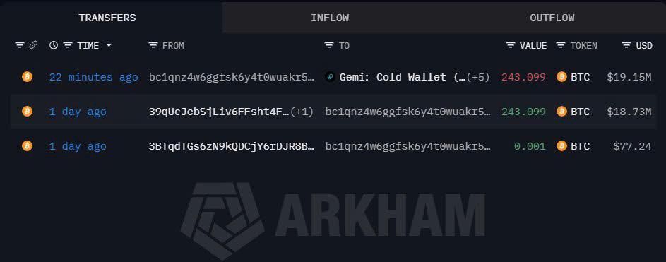 Khối lượng chuyển nhượng: 243 BTC.