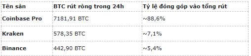 - 7181,91 BTC, tương đương gần 90% lượng BTC rút ròng trong ngày.