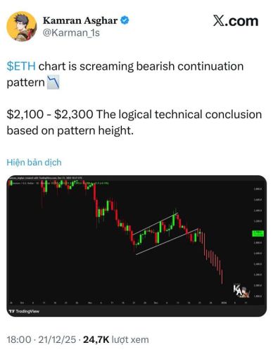 Cảnh báo rủi ro: Dù lạc quan, các chuyên gia vẫn không loại trừ kịch bản xấu. Nếu thất bại trong việc bứt phá khỏi vùng nén hiện tại, biểu đồ kỹ thuật cho thấy Ethereum có thể đối mặt với một đợt điều chỉnh sâu (correction) về vùng hỗ trợ 2.100 – 2.300 USD.