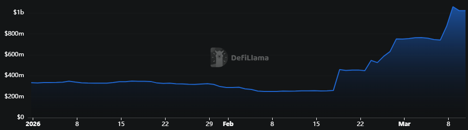 Thị trường DeFi vừa chứng kiến một cột mốc quan trọng khi Mantle – mạng lưới Layer 2 được hậu thuẫn bởi sàn giao dịch Bybit – chính thức gia nhập "câu lạc bộ tỷ đô". Theo dữ liệu mới nhất từ DefiLlama, vào ngày 9 tháng 3, Tổng giá trị khóa (TVL) trên hệ sinh thái này đã chạm ngưỡng 1,06 tỷ USD, đánh dấu mức cao nhất mọi thời đại kể từ khi dự án đi vào hoạt động.