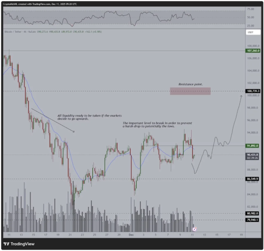 Kịch bản Bứt phá: Nếu vượt qua thành công 91.800 USD, Bitcoin sẽ kích hoạt một đợt tăng trưởng mạnh mẽ, xác nhận xu hướng tăng tiếp diễn.
