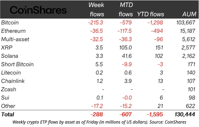 Tính từ đầu năm đến nay, các ETP Bitcoin đã ghi nhận mức rút ròng lũy kế lên tới 1,3 tỷ USD, giữ vị trí "quán quân" về tốc độ tháo chạy vốn.