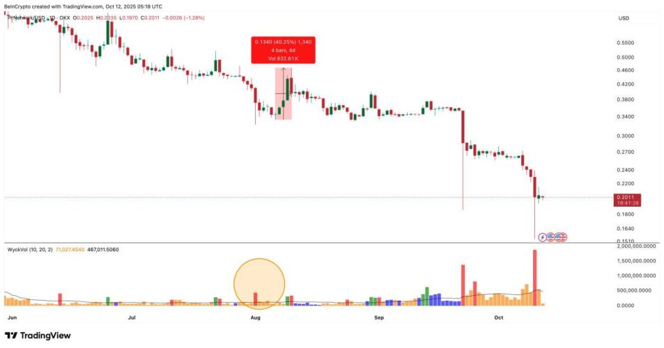 Mặc dù ghi nhận mức giảm gần 23% trong tuần qua, PI đã thành công bảo vệ vững chắc vùng hỗ trợ quan trọng $0.15. Sự kiên cường này là một tín hiệu đáng chú ý, cho thấy đồng coin này không bị cuốn theo đà sụp đổ chung của thị trường. Kể từ ngày 07/10/2023, PI đã bắt đầu quá trình hồi phục chậm rãi và hiện đang giao dịch quanh mốc $0.20, một dấu hiệu cho thấy niềm tin của phe mua đang dần quay trở lại.