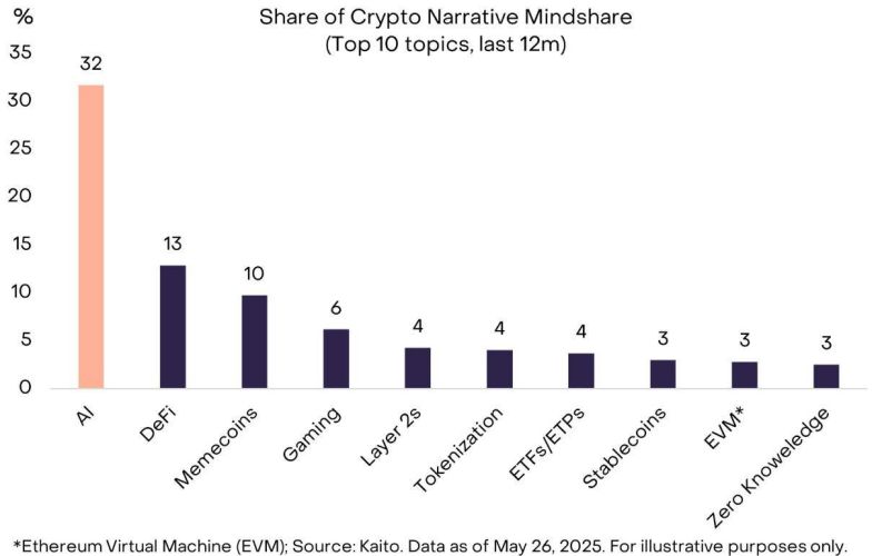 Theo báo cáo mới nhất của Zach Pandl và Will Ogden Moore từ Grayscale, stablecoin có thể sẽ trở thành mắt xích quan trọng trong hệ sinh thái AI crypto. Lý do? Stablecoin mang lại khả năng thanh toán nhanh, chi phí thấp, và khả năng lập trình, phù hợp để trở thành "nhiên liệu" cho các tác nhân AI hoạt động trong môi trường blockchain. Các ông lớn như Stripe, Meta, và nhiều ngân hàng toàn cầu đã nhảy vào lĩnh vực này. Coinbase cũng công bố tiêu chuẩn thanh toán mới để hỗ trợ AI sử dụng stablecoin. Cùng với đó, các dự luật như GENIUS stablecoin và luật về cấu trúc thị trường crypto có thể thúc đẩy sự chấp nhận rộng rãi hơn.