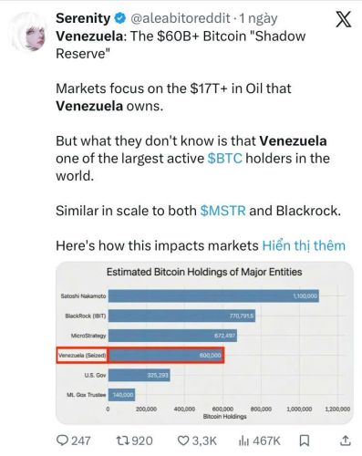 Nếu con số này được xác thực, Venezuela không chỉ là một trong những quốc gia sở hữu nhiều Bitcoin nhất mà còn sánh ngang các "gã khổng lồ" tổ chức như BlackRock hay MicroStrategy. Sự hiện diện của khối tài sản này đe dọa thay đổi hoàn toàn cán cân cung cầu và tâm lý thị trường trong năm 2026.