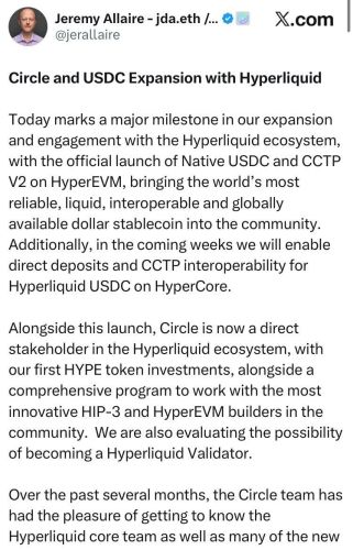 Theo thông báo từ CEO Jeremy Allaire, kế hoạch tích hợp sẽ được triển khai theo hai giai đoạn. Trước mắt, USDC sẽ được ra mắt trên mạng lưới HyperEVM tương thích với Ethereum của Hyperliquid, và sau đó sẽ mở rộng sang lõi HyperCore trong vài tuần tới.