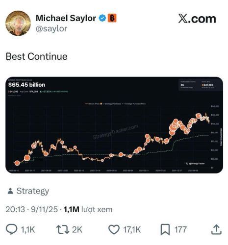 Điều này đã vẽ nên bức tranh toàn cảnh. Strategy là một trong những người nắm giữ Bitcoin lớn nhất thế giới. Và ngay cả khi thị trường chao đảo hay giá cổ phiếu sụt giảm, Michael Saylor dường như đang gửi đi một thông điệp rõ ràng: Niềm tin của ông vào Bitcoin là vĩnh cửu.
