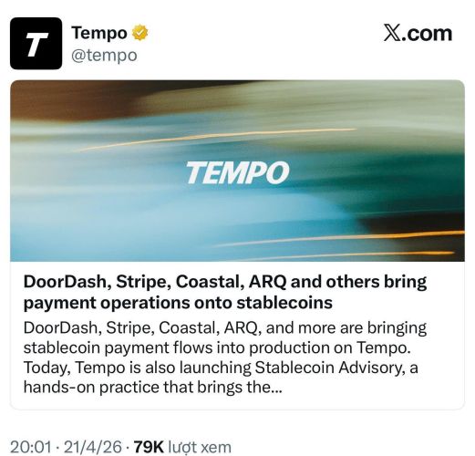 Hôm nay, ngày 21 tháng 4, DoorDash đã gây chấn động khi công bố hợp tác chiến lược với Tempo – nền tảng blockchain chuyên biệt về stablecoin. Mục tiêu của liên minh này là xây dựng hạ tầng thanh toán thế hệ mới cho các thương nhân và tài xế (Dashers) tại hơn 40 quốc gia.