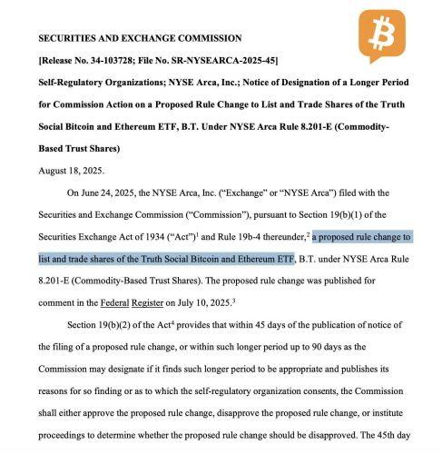 Trong bối cảnh thị trường tài sản kỹ thuật số đang nóng lên từng ngày, tham vọng của mạng xã hội Truth Social – "đứa con tinh thần" của Trump Media & Technology Group – về việc ra mắt quỹ ETF Bitcoin và Ethereum đã vấp phải rào cản đầu tiên. Theo một hồ sơ công bố ngày 18/8, Ủy ban Chứng khoán và Giao dịch Hoa Kỳ (SEC) đã chính thức thông báo sẽ gia hạn thời gian xem xét, với hạn chót mới được ấn định vào ngày 18 tháng 9.