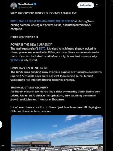 Khi hàng loạt công ty bắt đầu hoán đổi cơ sở hạ tầng giàu GPU của mình để cho thuê, phục vụ cho việc huấn luyện, suy luận và tính toán hiệu năng cao của AI, một hiệu ứng kỳ diệu đã xảy ra. Thị trường không còn xem họ là những công ty khai thác tiền điện tử đầy rủi ro nữa, mà định giá lại họ như những công ty AI giàu tiềm năng. Kết quả là, cổ phiếu của họ được hưởng một "mức phí bảo hiểm" cao hơn, mở ra cơ hội tăng trưởng khổng lồ.