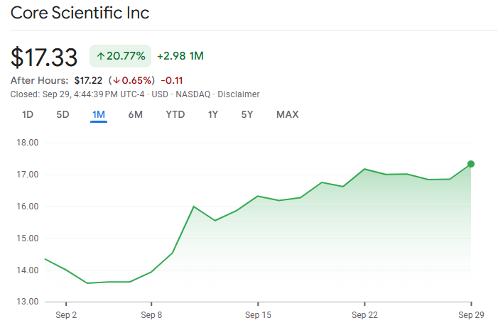 Biểu đồ giá CORZ trong tháng qua. Nguồn: Google Finance