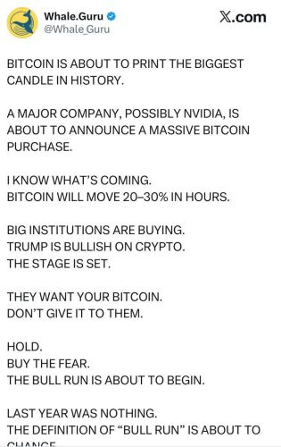 Tin đồn này, được châm ngòi bởi các tài khoản có tầm ảnh hưởng như Whale.Guru vào ngày 7 tháng 11 năm 2025, nhanh chóng thu hút sự chú ý. Lý do nó có sức lan toả là bởi NVIDIA vốn là nhà sản xuất GPU - phần cứng sống còn cho hoạt động khai thác tiền điện tử. Nhiều người kỳ vọng đây sẽ là một cú hích "Tesla 2.0", đánh dấu một trong những vụ đầu tư Bitcoin lớn nhất từ một tập đoàn công nghệ.