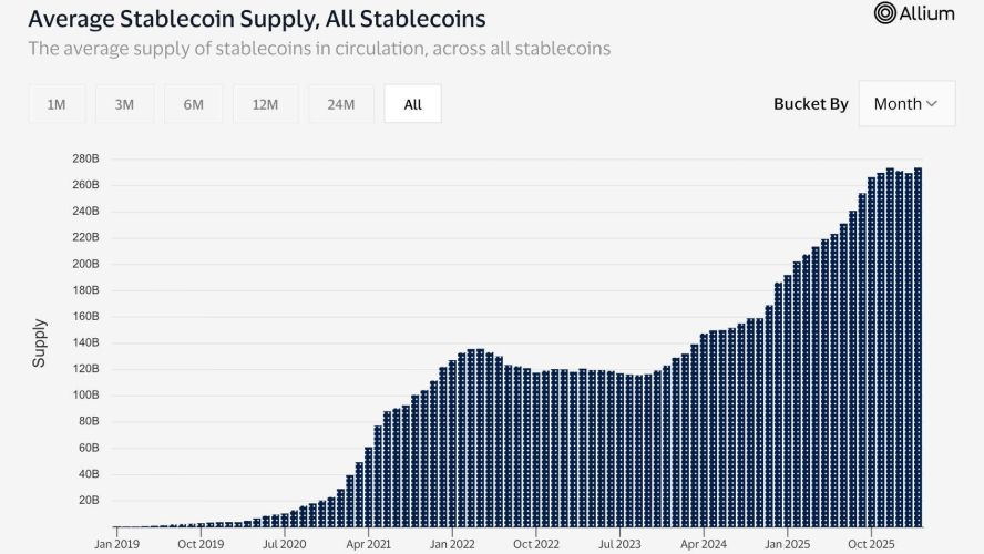 Tổng lượng Stablecoin cung cấp từ năm 2019 (Visa/Allium)