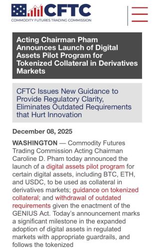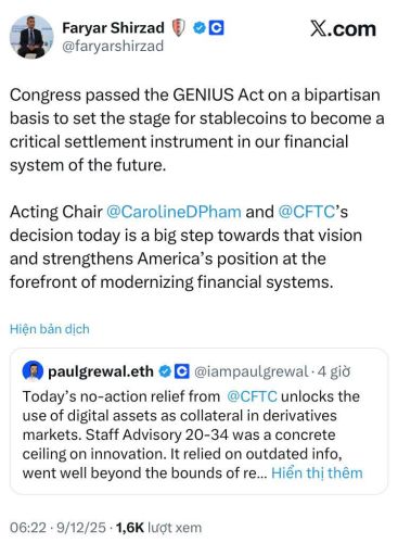 Đáng chú ý, thông báo này được đưa ra ngay sau khi Đạo luật GENIUS được thông qua, thiết lập nền tảng liên bang cho thanh toán bằng stablecoin với yêu cầu tỷ lệ dự trữ 1:1 nghiêm ngặt. CFTC cũng mở rộng phạm vi cho phép sử dụng các tài sản thực tế được mã hóa (như trái phiếu Kho bạc Hoa Kỳ và quỹ thị trường tiền tệ) làm tài sản thế chấp.