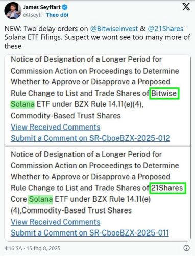 Nhà phân tích ETF nổi tiếng của Bloomberg, James Seyffart, đã nhanh chóng thông báo về đợt trì hoãn hàng loạt này. Đối với những ai đã theo dõi quá trình phê duyệt ETF Bitcoin và Ethereum, "kịch bản" này không hề xa lạ. SEC có một thói quen cố hữu là tận dụng tối đa khung thời gian pháp lý cho phép để xem xét các sản phẩm tài chính mới, đặc biệt là những sản phẩm liên quan đến tiền điện tử. Cần nhớ rằng, chỉ hai tháng trước, không khí vô cùng lạc quan. Sự chấp thuận bất ngờ dành cho các quỹ ETF Ethereum đã thắp lên hy vọng rằng con đường cho các altcoin lớn khác, đặc biệt là Solana, sẽ trở nên bằng phẳng hơn. Nhiều người tin rằng SEC, dưới sự lãnh đạo được cho là "thân thiện hơn", sẽ cởi mở hơn. Tuy nhiên, thực tế lại cho thấy con đường phía trước vẫn còn rất nhiều chông gai.