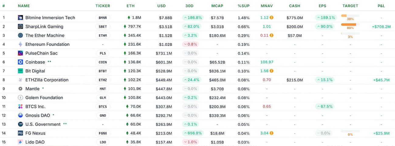 BitMine Immersion Technologies, một công ty được dẫn dắt bởi chiến lược gia tài chính nổi tiếng Tom Lee, đã tích lũy một lượng ETH khổng lồ, lên tới gần 1,87 triệu ETH, tương đương khoảng 8,1 tỷ USD theo giá trị hiện tại.