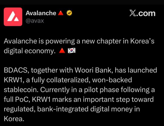 Lần đầu tiên, một stablecoin neo giá 1:1 với đồng Won Hàn Quốc (KRW) đã chính thức được giới thiệu, mở ra một chương mới cho thị trường tài sản số tại quốc gia này. Được bảo chứng bởi một trong những ngân hàng lớn nhất và vận hành trên nền tảng blockchain hiệu năng cao Avalanche, KRW1 không chỉ là một sản phẩm tài chính mà còn là một nước cờ chiến lược, đặt Hàn Quốc vào vị thế đáng gờm trên bản đồ tiền tệ số toàn cầu.