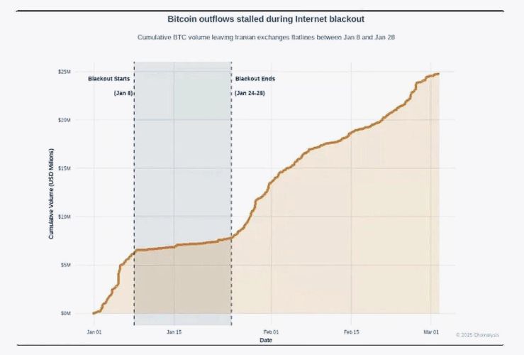 Nobitex, nền tảng giao dịch tài sản số lớn nhất quốc gia này, ghi nhận khối lượng rút tiền bùng nổ tới 700% chỉ vài phút sau khi tin tức về cuộc tấn công được công bố. Động thái "rút ống thở" thanh khoản này hoàn toàn trùng khớp với xu hướng dòng tiền Bitcoin chảy ra ngoài một cách ổn định trước và ngay sau sự cố sập mạng internet do chính phủ áp đặt vào ngày 8 tháng 1 vừa qua.