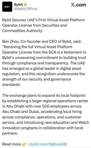 Tuy nhiên, tham vọng của Bybit không chỉ dừng lại ở thị trường UAE. Sàn giao dịch này đang lên kế hoạch thành lập một trung tâm hoạt động khu vực ngay tại Abu Dhabi, dự kiến với quy mô lên tới 500 nhân viên, làm bàn đạp để chinh phục các mục tiêu mở rộng lớn hơn trong toàn khu vực.