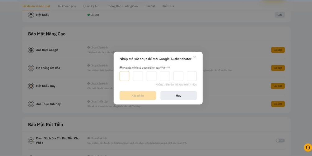 Từ giờ, mỗi khi đăng nhập hay rút tiền, bạn sẽ cần nhập mã 2FA này