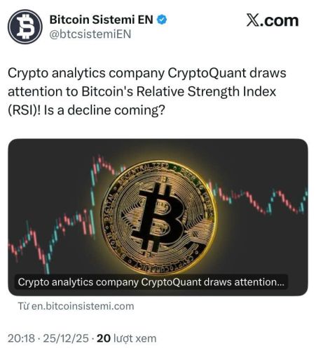 Dữ liệu on-chain mới nhất đang phát đi những tín hiệu đáng quan ngại khi chỉ báo RSI của Bitcoin bất ngờ rơi xuống vùng nhạy cảm, phá vỡ các mức trung bình quan trọng. Các chuyên gia từ CryptoQuant cảnh báo, 1-2 tháng tiếp theo sẽ là khoảng thời gian "sinh tử", quyết định liệu thị trường sẽ tìm thấy đáy để bật lên hay chìm sâu vào một đợt suy thoái mới.