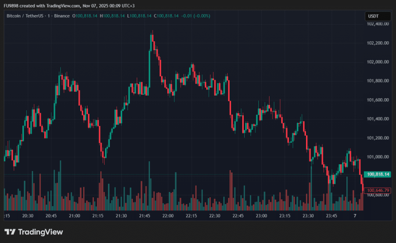 Tuần mới mở đầu không hề "dễ thở" cho các nhà đầu tư tiền điện tử khi sắc đỏ bao trùm. Bitcoin (BTC), đồng tiền dẫn dắt thị trường, đã trượt dốc 2,81% chỉ trong 24 giờ, rớt xuống mức giá 100.794 đô la. Tính chung cả tuần, mức sụt giảm đã lên tới 6,25%.