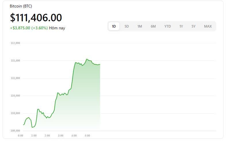 Vào rạng sáng ngày 22/5 (theo giờ Việt Nam), giá Bitcoin bất ngờ tăng vọt, vượt mốc $111,800 trên nhiều sàn giao dịch lớn như Coinbase và Binance. Chỉ trong vòng 24 giờ, đồng tiền số này đã tăng hơn 6,5%, kéo theo làn sóng FOMO lan rộng trên toàn thị trường.