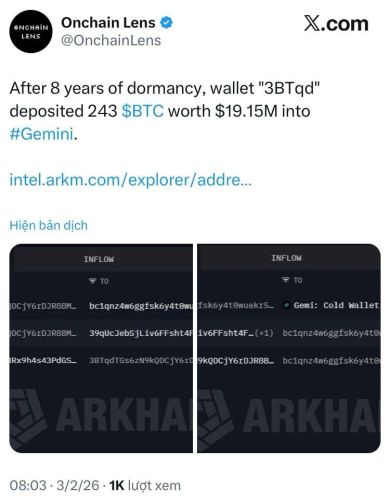 Hiện tại, thị trường vẫn đang theo sát liệu số BTC này sẽ được bán khớp lệnh ngay lập tức hay chỉ được lưu trữ tạm thời trên ví nóng của sàn. Sự xuất hiện của những "người khổng lồ" từ quá khứ luôn là lời nhắc nhở về tính minh bạch và sức sống bền bỉ của mạng lưới Bitcoin qua nhiều chu kỳ kinh tế.