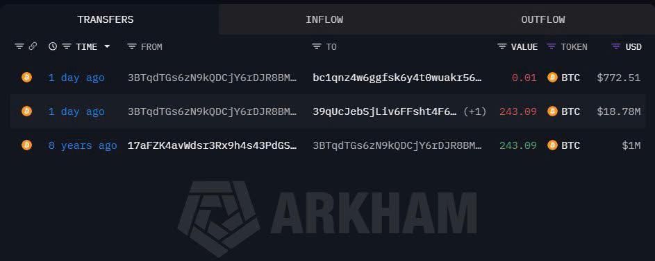 Khối lượng chuyển nhượng: 243 BTC.
