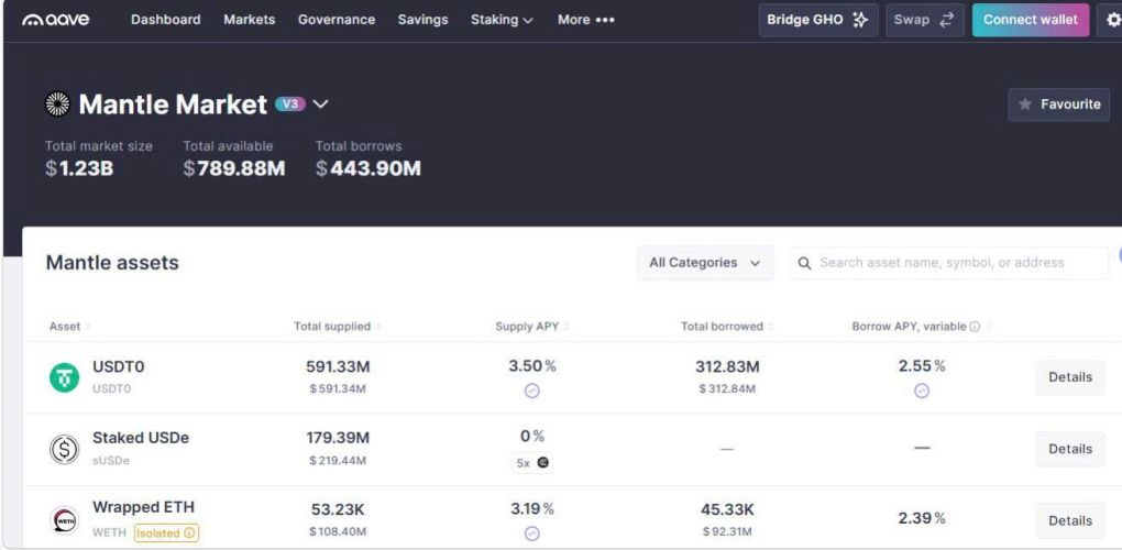 Con số ấn tượng: Tính đến thời điểm hiện tại, quy mô thị trường cho vay và vay mượn của AAVE trên Mantle đã vượt qua ngưỡng 1,2 tỷ USD.