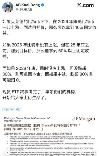 Theo hồ sơ pháp lý mới nhất, JPMorgan đã thiết kế một công cụ tài chính (note) hoạt động dựa trên hiệu suất của quỹ IBIT, nhưng với một cơ chế thưởng/phạt cực kỳ khắc nghiệt: