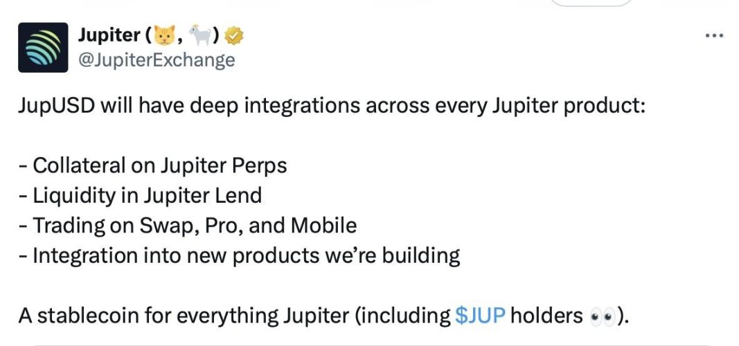 Theo một thông báo chính thức, stablecoin JupUSD dự kiến sẽ ra mắt vào giữa Quý 4 năm 2025. Đây không chỉ là một sản phẩm độc lập mà còn được định vị là "xương sống" thanh khoản, tích hợp sâu rộng vào tất cả các sản phẩm của Jupiter. Cụ thể, JupUSD sẽ đóng vai trò là: