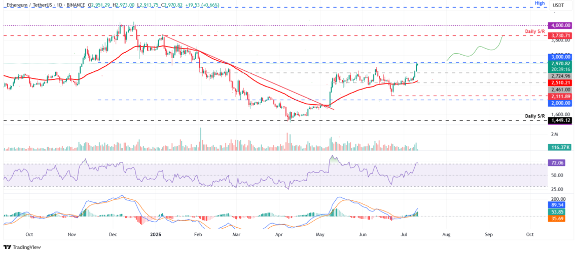 Trận chiến tại $3.000 sẽ mang tính quyết định. Nếu ETH thất bại và bị từ chối tại đây, kịch bản điều chỉnh có thể xảy ra. Khi đó, vùng $2.724 (kháng cự cũ) sẽ trở thành vùng hỗ trợ đầu tiên mà các nhà đầu tư cần quan sát.
