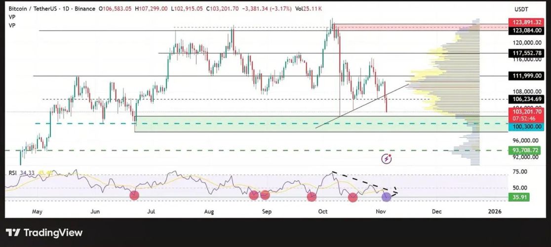 Kịch bản giảm giá: Giới phân tích cảnh báo, nếu áp lực bán tiếp tục, Bitcoin có nguy cơ kiểm tra lại mức hỗ trợ tâm lý quan trọng (quanh vùng 100.000 USD). Một cú phá vỡ và đóng cửa nến ngày bên dưới vùng cầu then chốt (quanh 100.300 USD) có thể xác nhận xu hướng giảm giá tiếp diễn, mở đường cho việc kiểm tra các mức thấp hơn, có khả năng lùi về vùng giá được ghi nhận hồi tháng Sáu (quanh 93.708 USD).