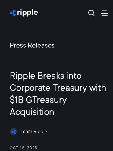 Trong một động thái được ví như "cá lớn nuốt cá bé", Ripple đã chính thức công bố việc mua lại GTreasury, một công ty chuyên cung cấp giải pháp quản lý kho bạc cho các tập đoàn lớn. Đây là thương vụ bom tấn thứ ba của Ripple chỉ trong năm 2025, và tất cả đều nhắm thẳng vào việc chiếm lĩnh cơ sở hạ tầng của giới tài chính truyền thống.