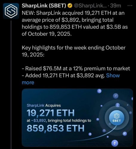Theo thông báo chính thức, SharpLink vừa hoàn tất việc mua thêm 19.271 ETH. Giao dịch này được thực hiện với mức giá trung bình là 3.892 đô la cho mỗi đồng. Với đợt bổ sung mới nhất này, tổng số Ethereum mà công ty nắm giữ đã đạt đến con số ấn tượng là 859.853 ETH. Tính theo giá thị trường, "kho bạc" Ethereum của SharpLink hiện có giá trị vượt mốc 3,5 tỷ đô la.