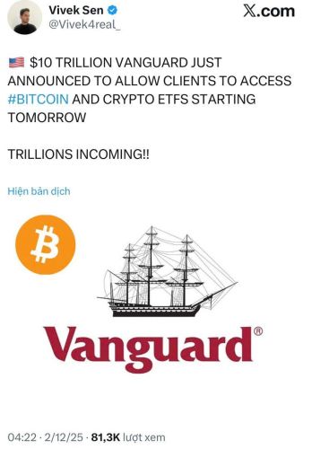 Từng được xem là "pháo đài" bảo thủ nhất phố Wall khi kiên quyết nói không với tài sản kỹ thuật số, Vanguard vừa bất ngờ đảo ngược thế cờ. Bắt đầu từ thứ Ba tới, hơn 50 triệu khách hàng của công ty quản lý tài sản lớn thứ hai thế giới này sẽ chính thức được giao dịch các quỹ ETF tiền điện tử, một động thái được giới chuyên gia dự báo sẽ kích hoạt "bức tường tiền" khổng lồ chảy vào thị trường.