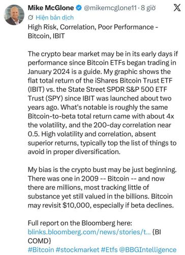 Tâm lý đám đông: Chỉ số Sợ hãi & Tham lam sụt giảm đáng kể. Chuyên gia Mike McGlone từ Bloomberg thậm chí còn đưa ra dự báo gây sốc: Crypto có thể mới chỉ ở giai đoạn đầu của thị trường gấu và BTC hoàn toàn có khả năng rơi về vùng 10.000 USD.