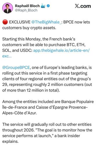 Trong một động thái được xem là bước ngoặt của ngành tài chính châu Âu, Nhóm ngân hàng BPCE đã bắt đầu triển khai tính năng cho phép khách hàng mua bán trực tiếp các loại tiền mã hóa hàng đầu như Bitcoin (BTC), Ethereum (ETH), Solana (SOL) và USDC.