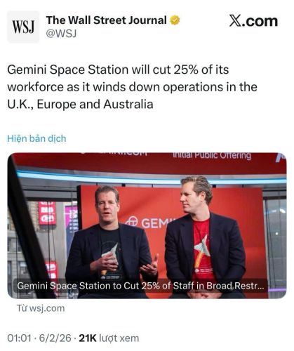 Sàn Gemini của anh em nhà Winklevoss vừa thông báo sa thải 25% nhân viên và rút lui khỏi các thị trường lớn như Anh và EU để bảo vệ lợi nhuận.