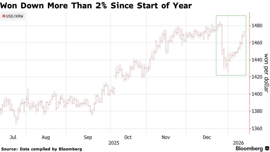 Đồng Won đã mất gần 2% giá trị từ đầu năm, thuộc nhóm các đồng tiền yếu nhất châu Á.