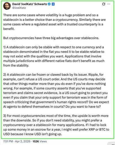Tuy nhiên, ý tưởng lãng mạn này ngay lập tức va phải bức tường thực tế mang tên David ‘JoelKatz’ Schwartz – Giám đốc Công nghệ danh dự của Ripple. Thay vì nói về lý tưởng phi tập trung, Schwartz kéo bài toán về lại bản chất pháp lý và kỹ thuật cốt lõi.