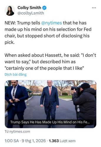 Tuy nhiên, Tổng thống cũng không ngần ngại dành lời khen ngợi công khai, thừa nhận Hassett "chắc chắn là một trong những người tôi thích nhất". Động thái này càng củng cố niềm tin của giới quan sát rằng Hassett là một ứng viên nặng ký, dù ông Trump vẫn chưa chính thức "lật bài".