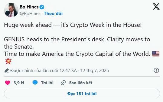 Trong tuần lễ từ ngày 14 đến 18 tháng 7, mọi ánh mắt của thế giới tài chính kỹ thuật số đều đổ dồn về Đồi Capitol, Washington D.C. Đây không chỉ là một tuần làm việc bình thường của các nhà lập pháp Mỹ. Đây là "Tuần lễ Tiền điện tử" – một khoảng thời gian có thể đi vào lịch sử như một bước ngoặt quyết định, định hình lại vị thế của Hoa Kỳ trên bản đồ tài sản kỹ thuật số toàn cầu. Trên bàn nghị sự là ba dự luật mang tính sống còn, mỗi dự luật nắm giữ một mảnh ghép quan trọng của bức tranh tương lai: stablecoin, xung đột pháp lý và quyền riêng tư tài chính. Cuộc đối đầu chính trị đang nóng lên từng giờ, và kết quả của tuần lễ này sẽ trả lời cho câu hỏi lớn: Liệu Hoa Kỳ có thể vượt qua các trung tâm như Dubai hay Singapore để giành lấy vương miện "thủ đô tiền điện tử của thế giới"? Bo Hines, Giám đốc Tài sản Kỹ thuật số tại Hội đồng Tiền điện tử Hoa Kỳ, đã tự tin tuyên bố: "Nước Mỹ đang trên bờ vực trở thành thủ phủ tiền điện tử của thế giới." Ông tin rằng với một hành lang pháp lý rõ ràng, sự đổi mới sẽ bùng nổ và niềm tin của nhà đầu tư sẽ được củng cố vững chắc. Nhưng con đường đến vinh quang không hề bằng phẳng.